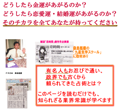 このブログは有名人もお忍びで通い、政界でも古くから頼られてきた占術。このページを読むだけでも、知られざる業界常識が学べます。主婦やサラリーマンが最短で頼りの人となる法、桑島鑑慶の『最短であなたもプロ級になるための占い講義』九星気学DVDの当たる占い師、9星気学、運勢、相性判断、レビュー、内容、効果、方法、体験、感想、評判、口コミ、購入者の声、評判、実践、検証、暴露、比較、詳細、ランキン グ、クチコミ、教えて、コメント、失敗談、成功談などの情報を公開しています。